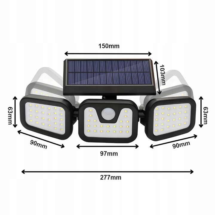 LAMPA SOLARNA POTRÓJNA 100 LED COB Z CZUJNIEKIEM ZMIERZCHU ORAZ RUCHU